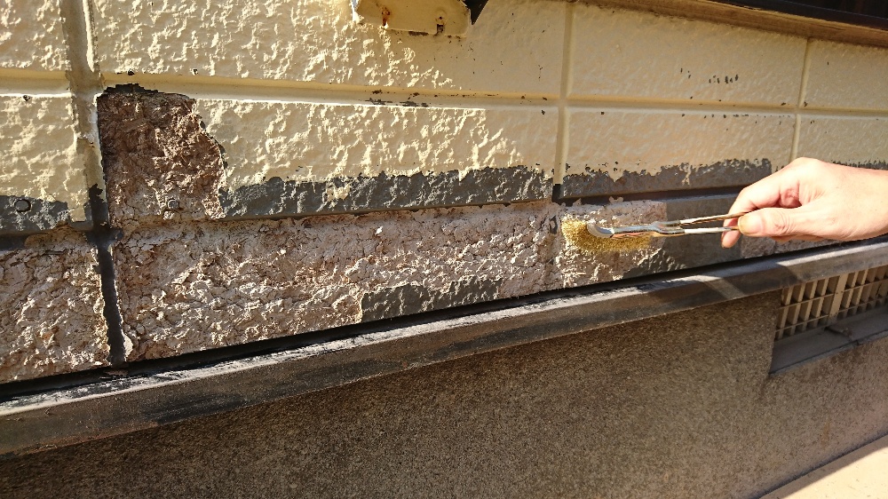 傷んでいる部分をワイヤーブラシなどで研磨しました。