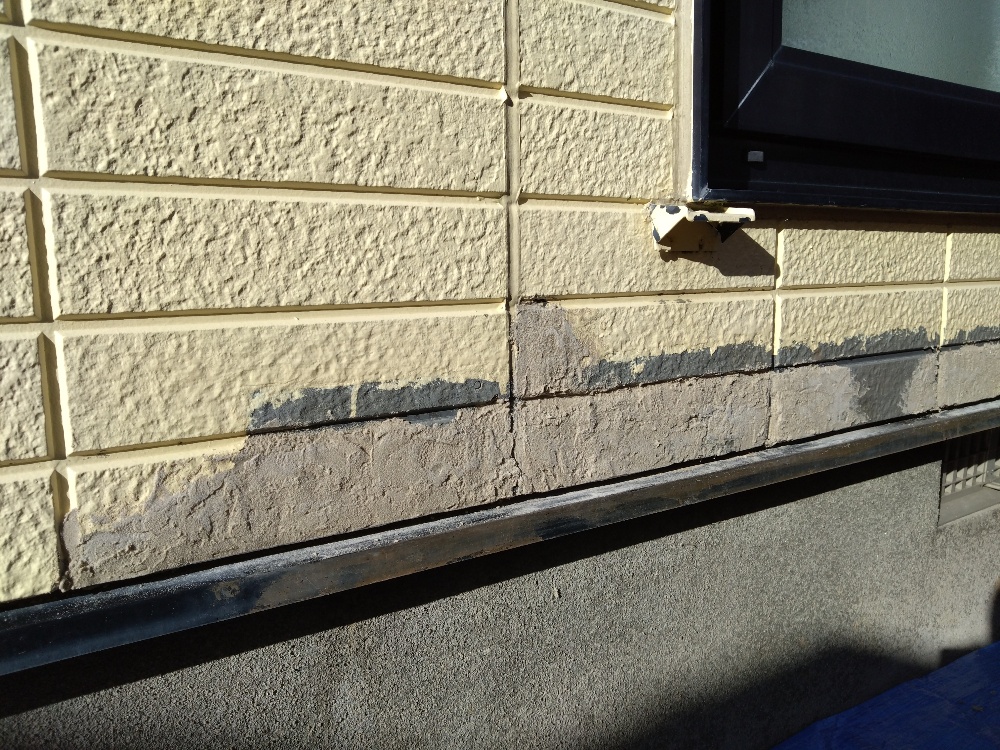 特殊な外壁用パテを用いて既存の外壁の模様を付け、大きな穴は数回に分けて穴埋めましました。